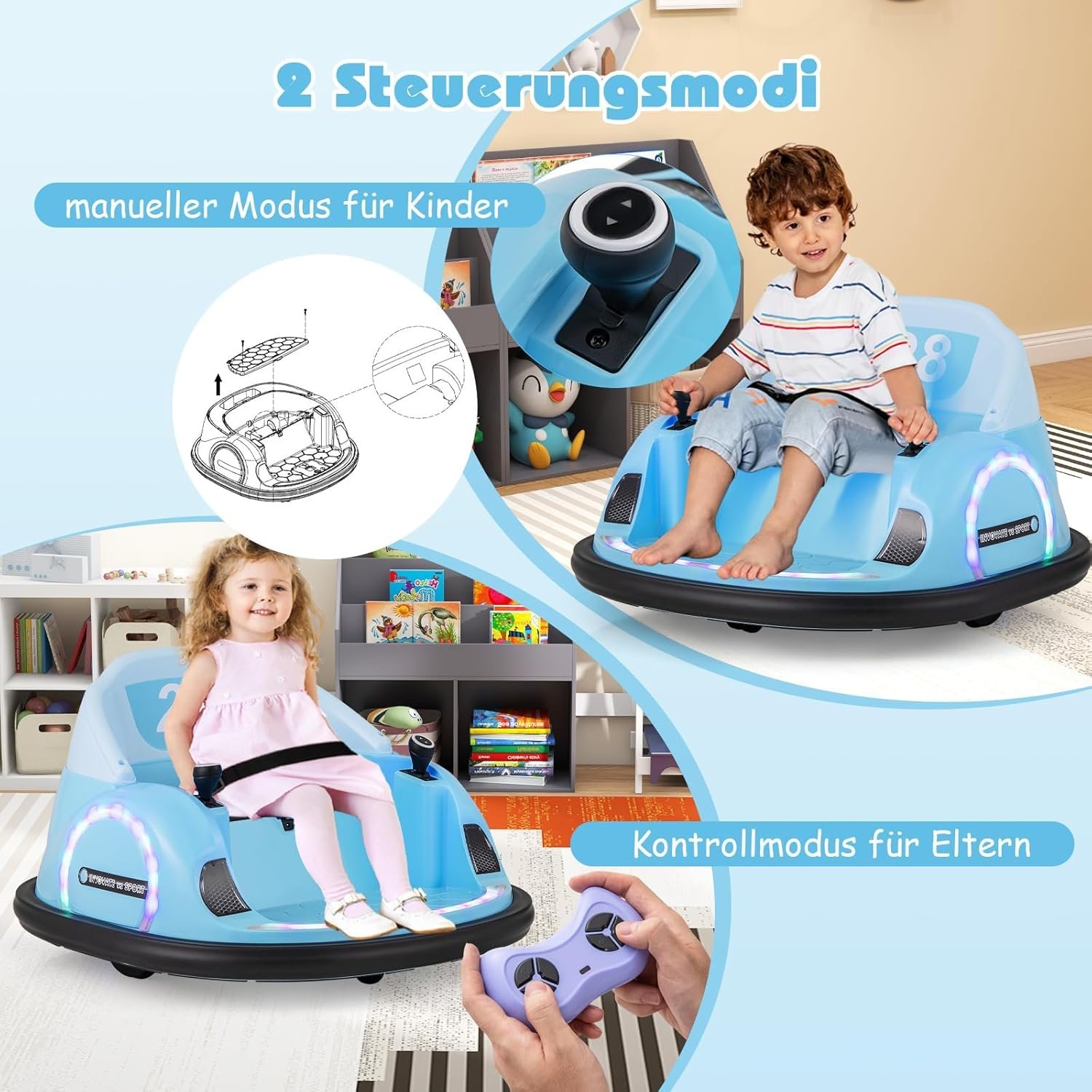 Dual control is genius! Kids can use the joystick, parents can assist¡ª360¡ã spin and lights add excitement.